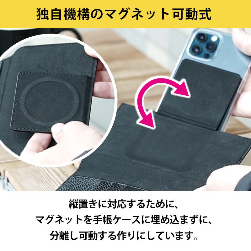 MagSafe/マグセイフ対応 マグネット 手帳型ケース 汎用機種タイプ iPhone&Smartphone(4.7〜6.3インチ)対応 縦スタンド 横スタンド 「縦置きできる手帳ケース」 ブラック