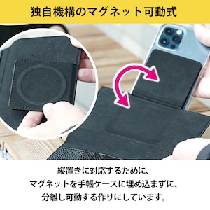 MagSafeに対応したシェルケースや、付属のメタルシールを使うことで、お使いのシェルケースを装着したまま、手帳ケースを後付けしてご利用できます。※シェルケースの厚みによっては対応できない場合があります。