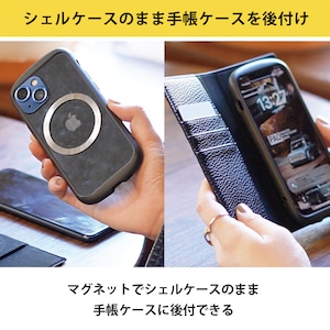 【シェルケースをつけたまま手帳ケースを後付けできる】